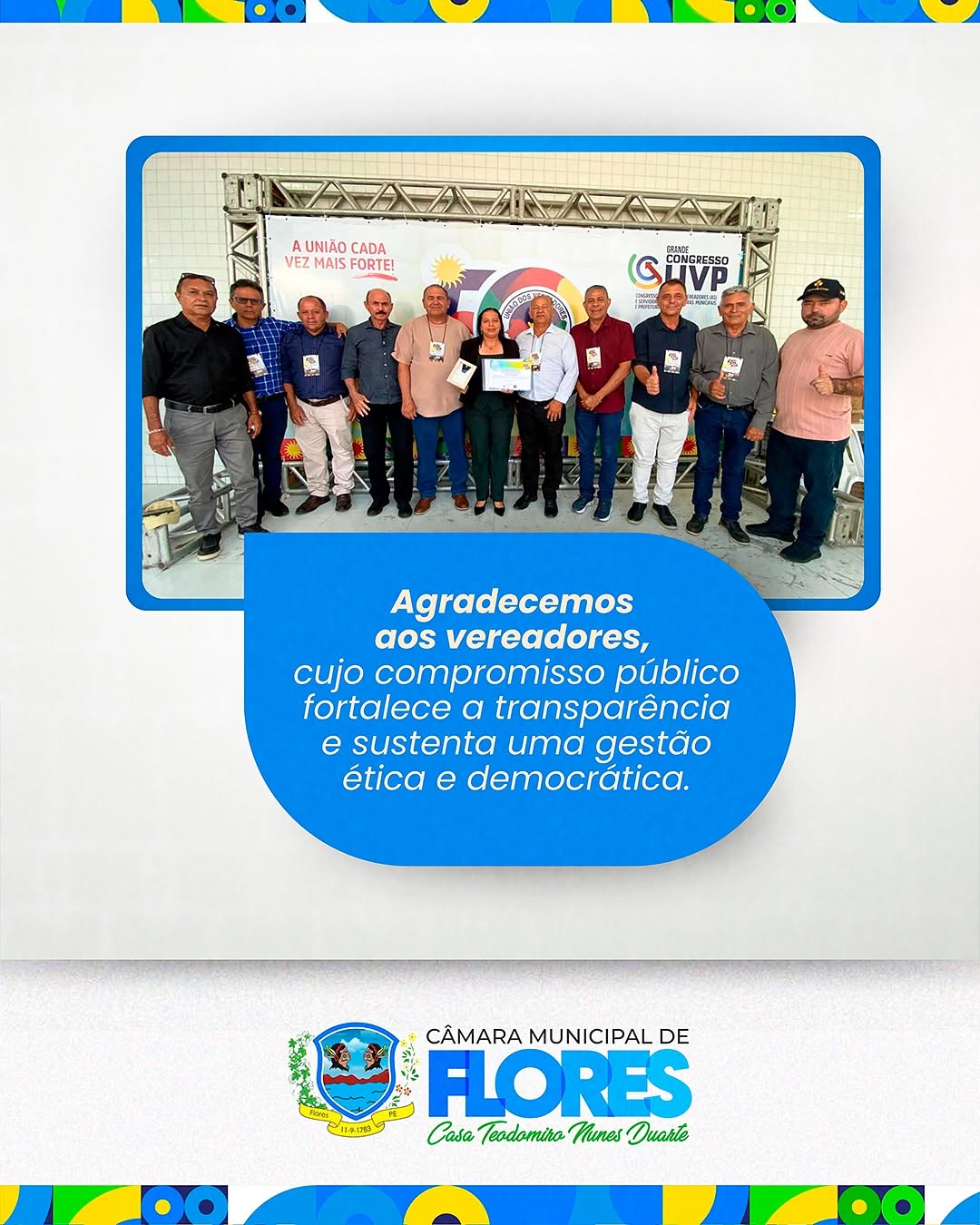 A Câmara Municipal de Flores tem a satisfação de informar que o certificado e o troféu do Selo Diamante da ATRICON já chegaram oficialmente à nossa Casa de Leis. 💎