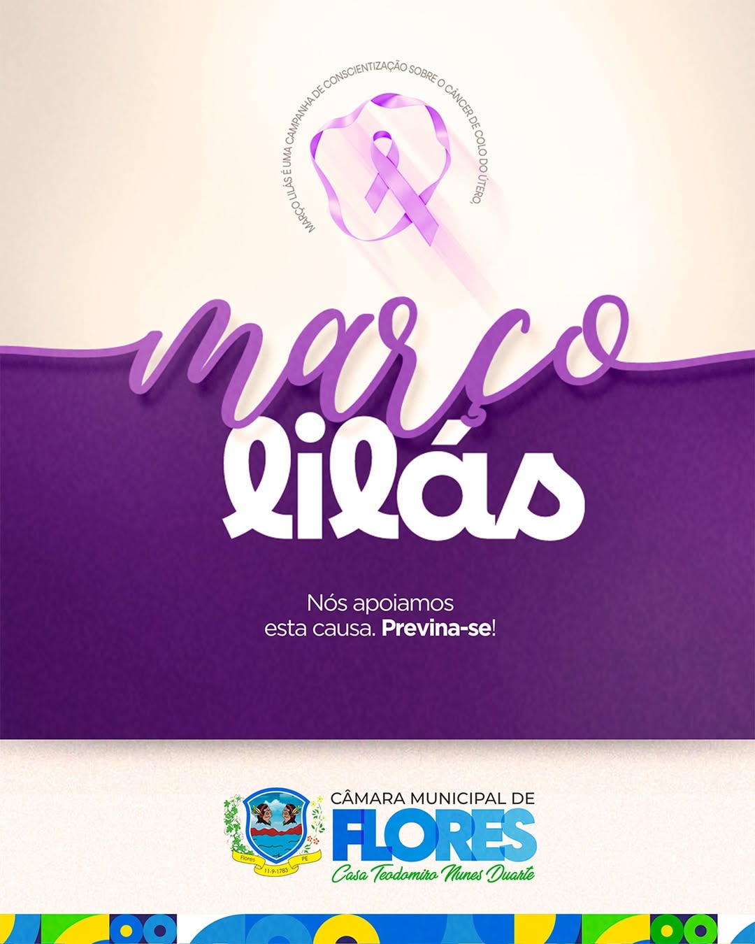 A prevenção é o melhor caminho para salvar vidas. O câncer de colo do útero pode ser prevenido e, quando descoberto cedo, tem grandes chances de cura. Mulher, cuide da sua saúde! Realize seus exames regularmente e mantenha sua consulta em dia. 💜 A Câmara Municipal de Flores apoia essa causa. Previna-se!