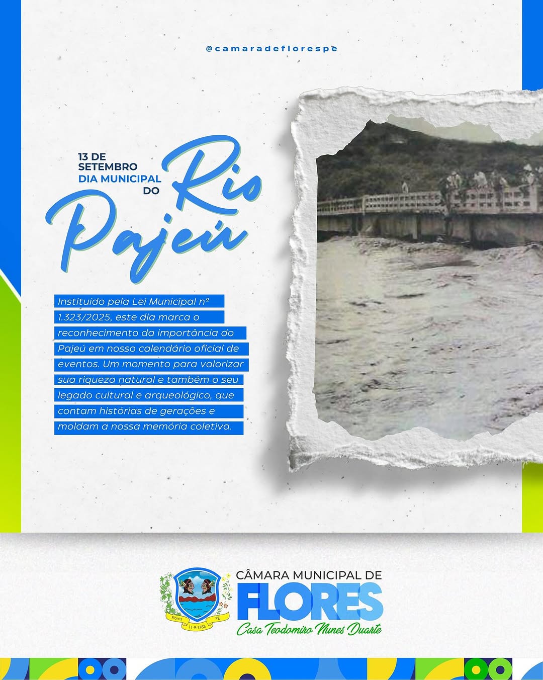🌊 13 de Setembro – Dia Municipal do Rio Pajeú 🌿 Hoje celebramos a força e a história do Rio Pajeú, que não é apenas um curso d’água, mas um símbolo de vida, cultura e identidade para o nosso povo. Instituído pela Lei Municipal nº 1.323/2025 (Projeto de Lei enviado à Câmara Municipal pelo Poder